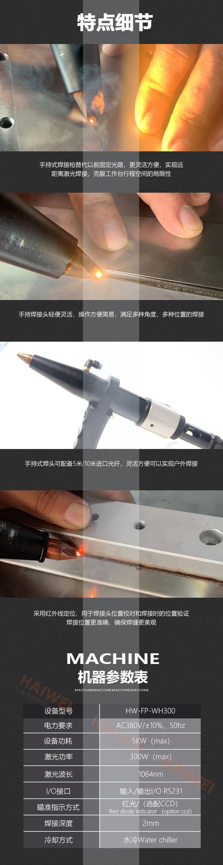手持式激光焊接機配備進口光纖,靈活方便,可實現(xiàn)戶外焊接,手持式焊槍的操作模式,可以對工件實現(xiàn)任意角度的焊接,適用各種復(fù)雜焊縫,各種器件的點焊。